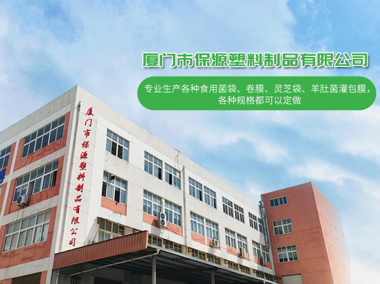 廈門市保源塑料制品有限公司專業生產食用菌菌種袋、栽培、簡膜、套環等系列產品,多年來受到廣大菇農的認可。 我司充分發揮特區經濟、科技優勢、廣納人才。引進先進吹膜機組和封口設備,全程電腦監控生產。選用進口優質原材料。使產品環保、可靠,封口性能好。合格率達99%以上,并在生產工藝上不斷創新,深受廣大菇農青睞。